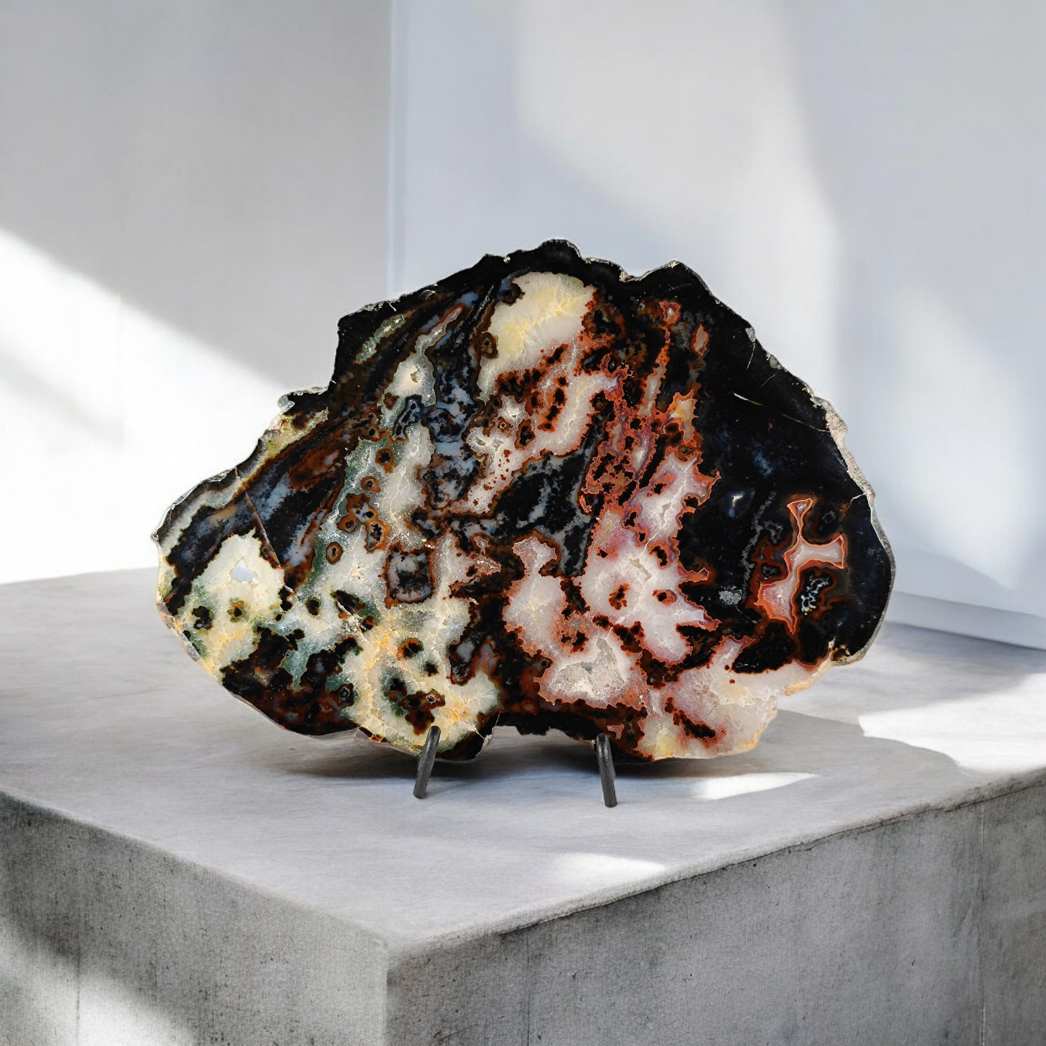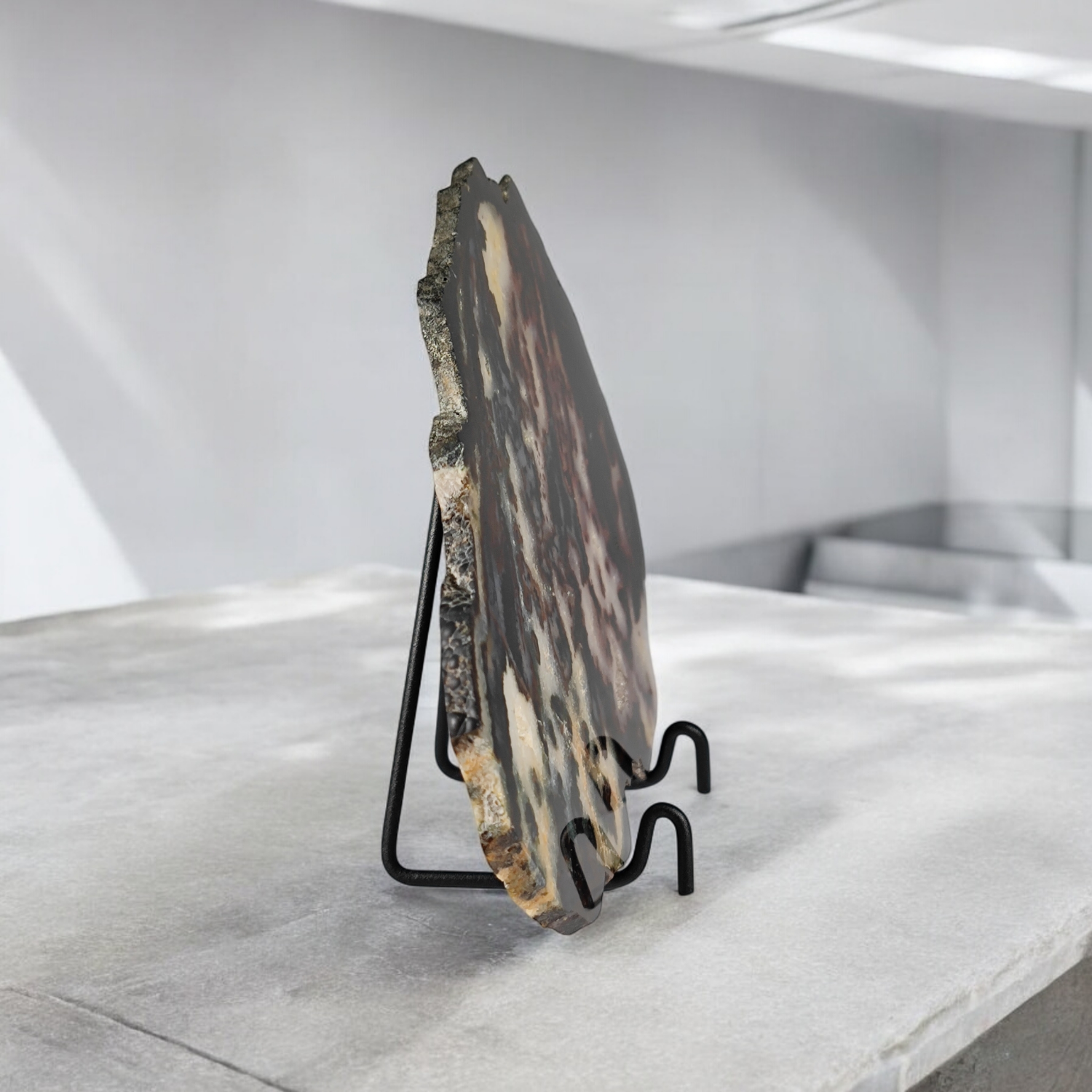 Achat Scheibe mit schwarzem Metallständer
