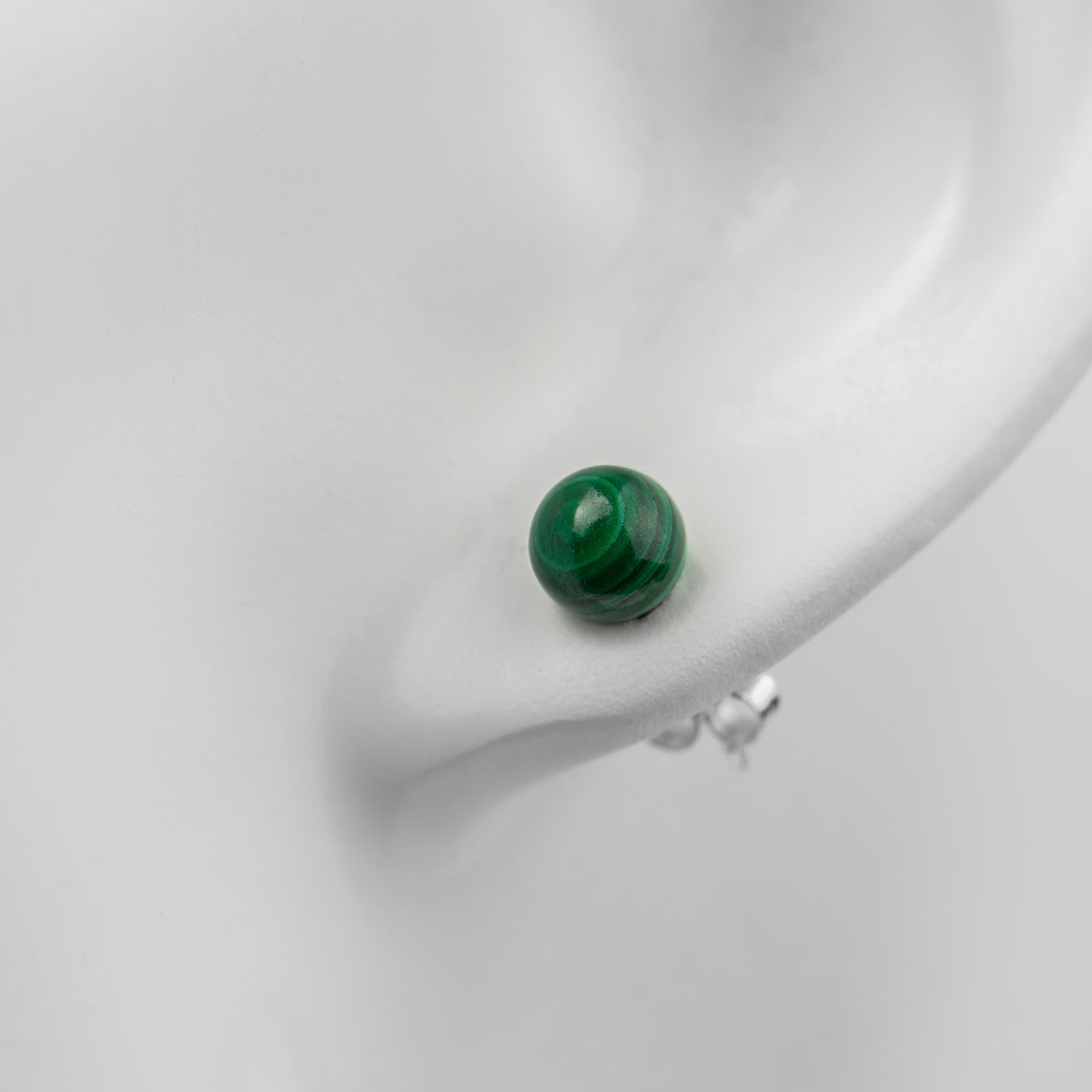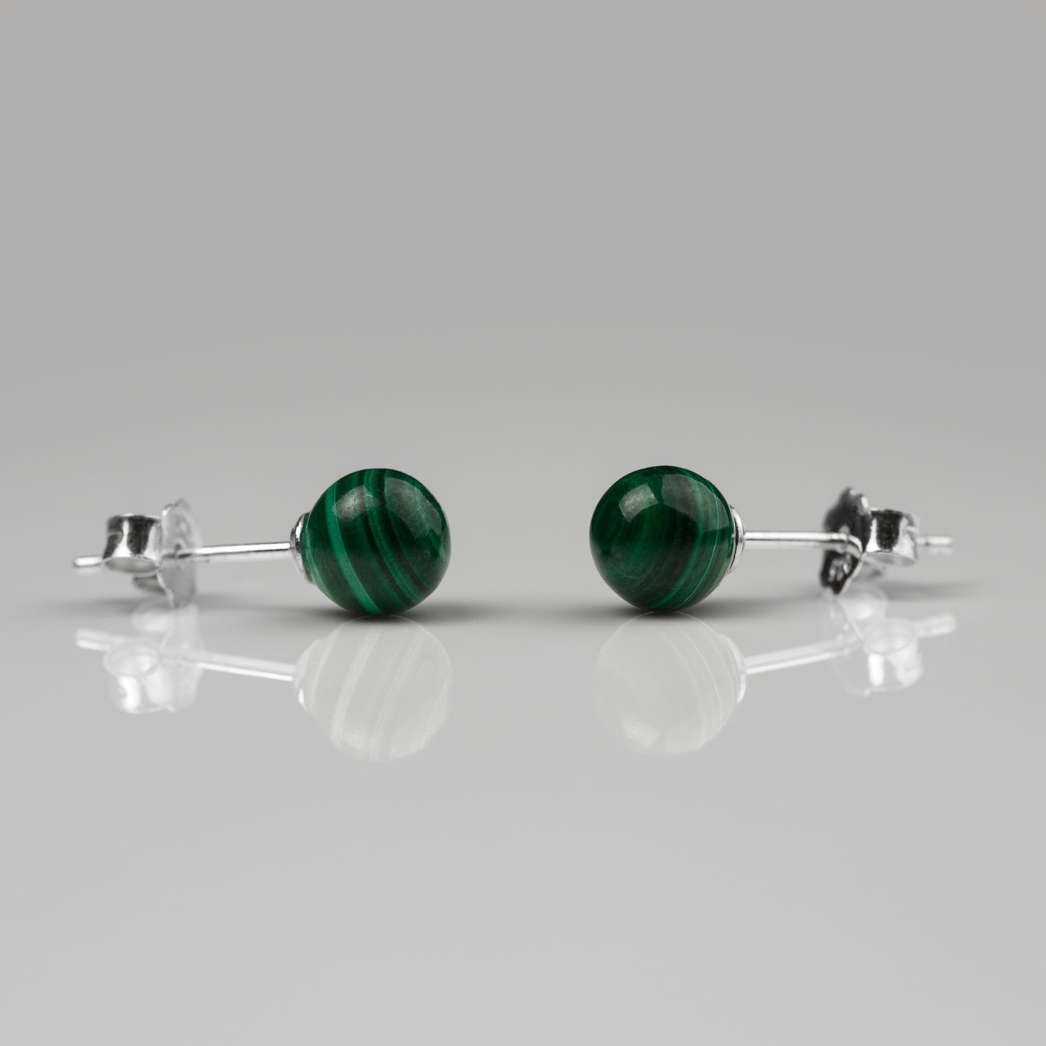 Hier erhalten sie Malachit Kugel Ohrstecker in A+ Qualität verarbeitet mit 925 Sterlingsilber