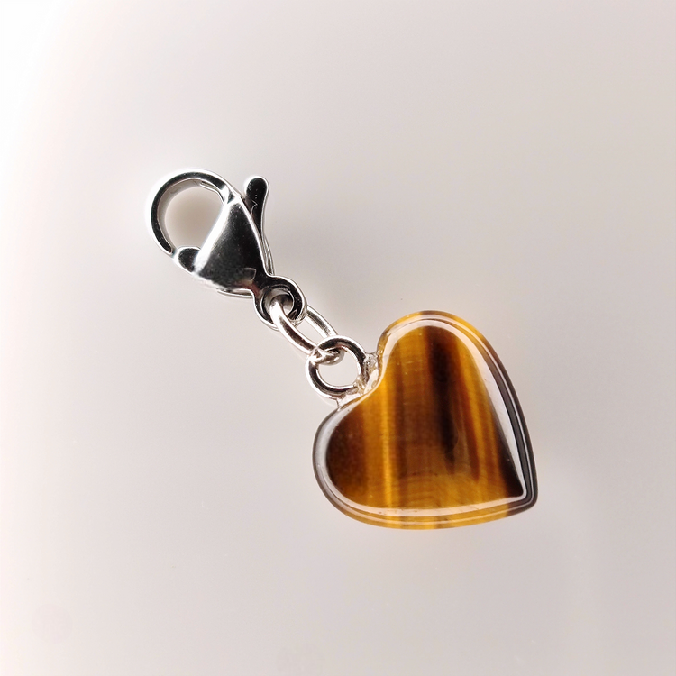 Hier erhalten Sie passend zum Sternzeichen Zwilling, ein Tigerauge Herz mit Edelstahl Karabiner zum anhängen an jedes Armband.