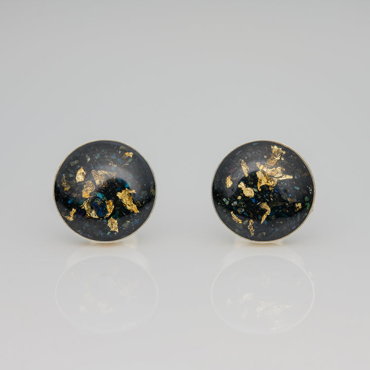 Siliziumcarbid mit 24K Blattgold 925 Sterlingsilber Ohrstecker 10mm
