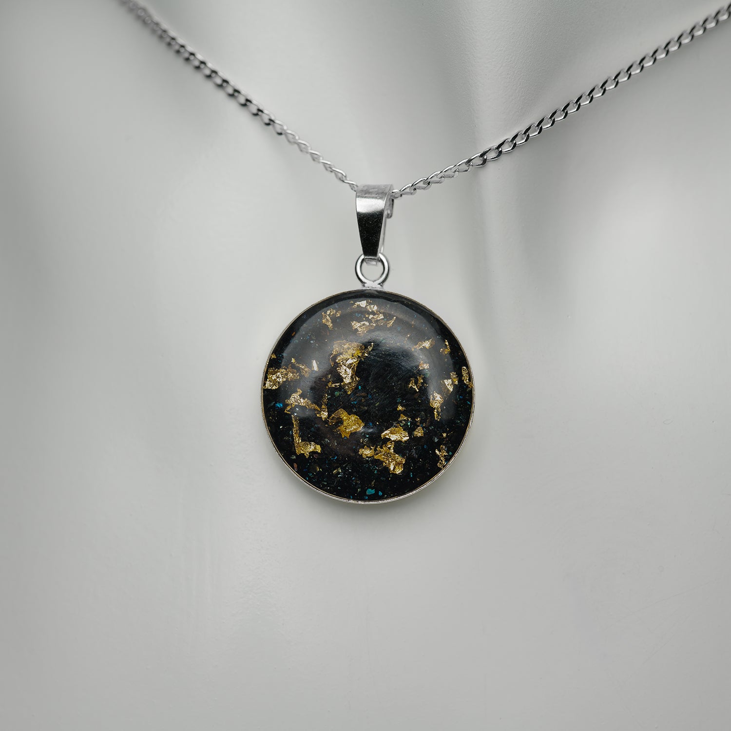 Siliziumcarbid mit 24K Blattgold Anhänger 20mm 925er Sterlingsilber