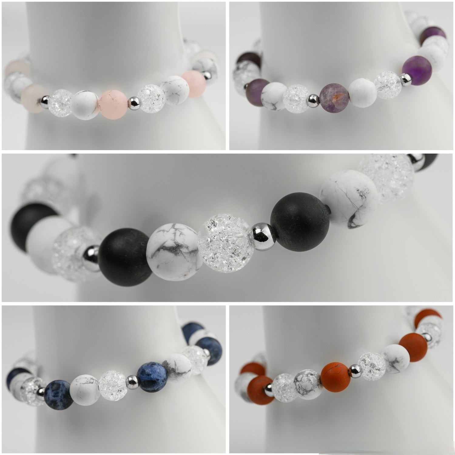Edelstein Armbänder Cracked Bergkristall Howlith + Rosenquarz Obsidian Sodalith Amethyst Jaspis
