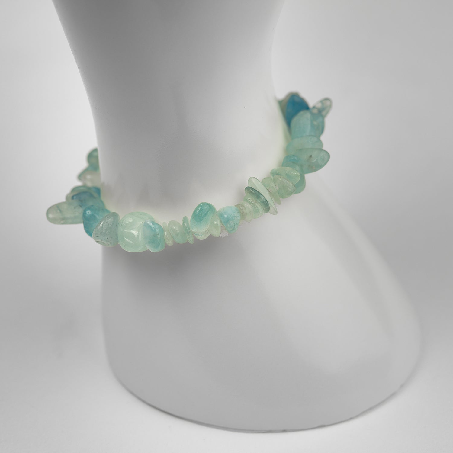 - Edelstein Armband mit Olivin Splittern, aufgezogen auf einen elastischen Nylonfaden, daher flexibel und bequem anzulegen. Das Armband hat eine Tragelänge von max. 18 - 20 cm