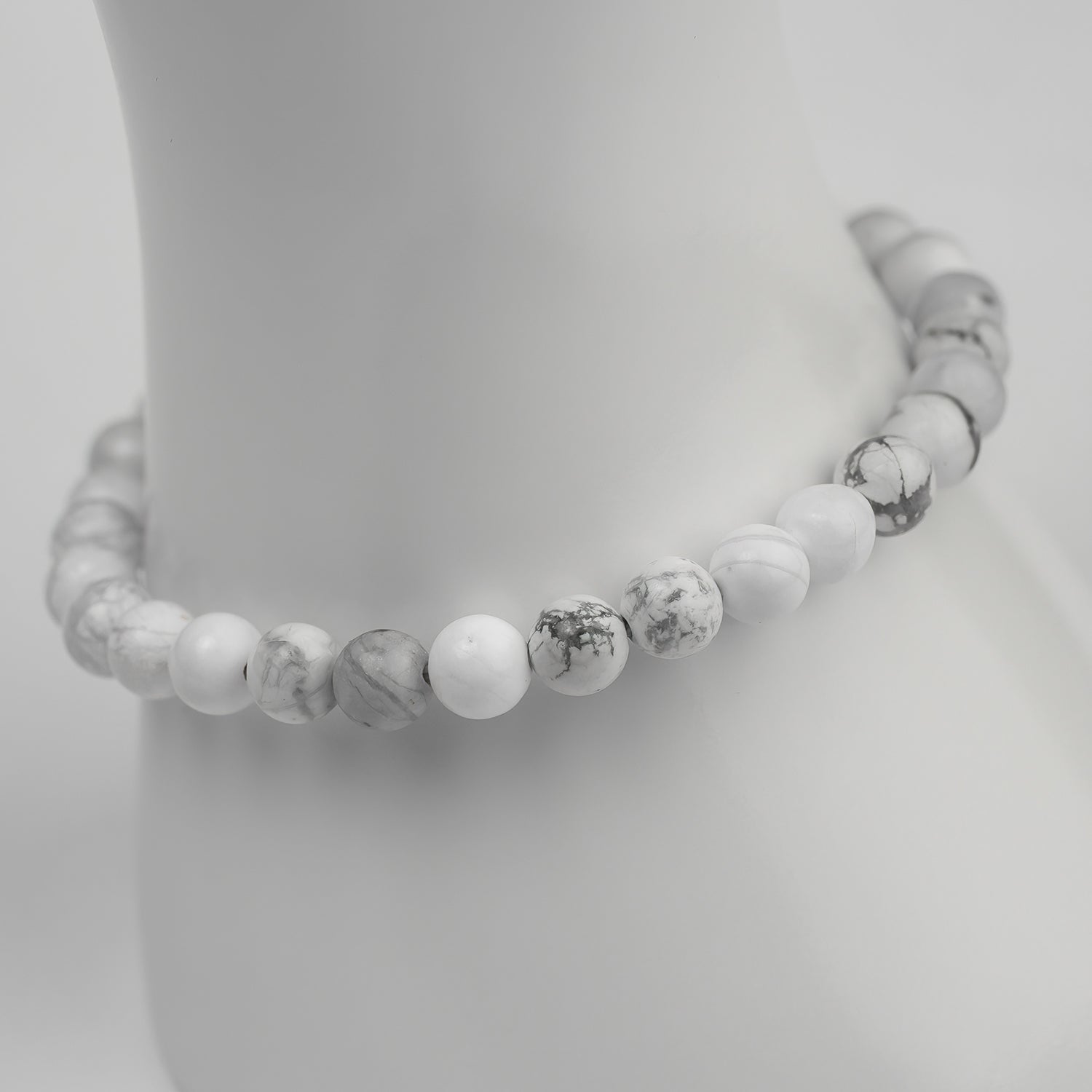 - Howlith Armband ‣ Einheitsgröße | Unisex ‣ Perlenform: rund | poliert ‣ Perlengröße: Ø x 6 - 8 mm wählbar