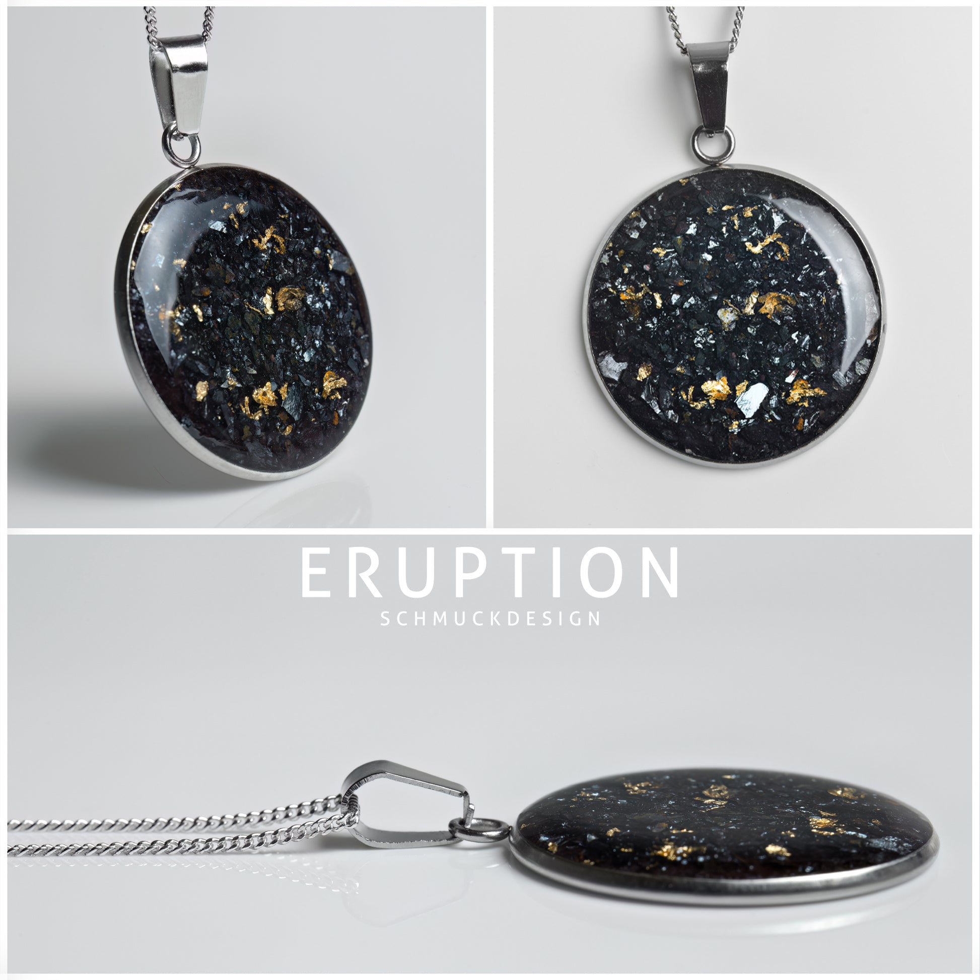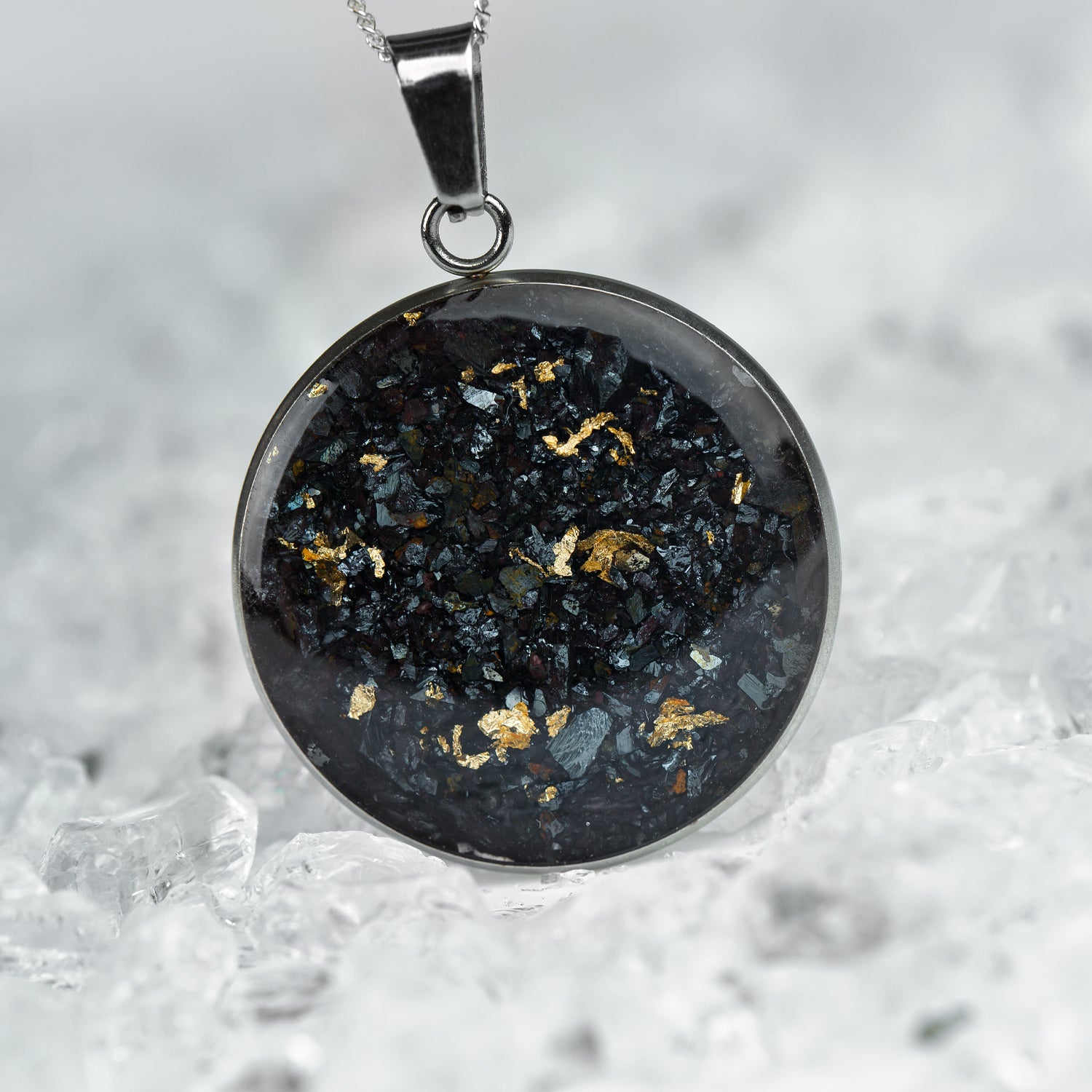 Hier erhalten Sie passend zum Sternzeichen Skorpion, ein Elba Hämatit / 24k Blattgold Medaillon