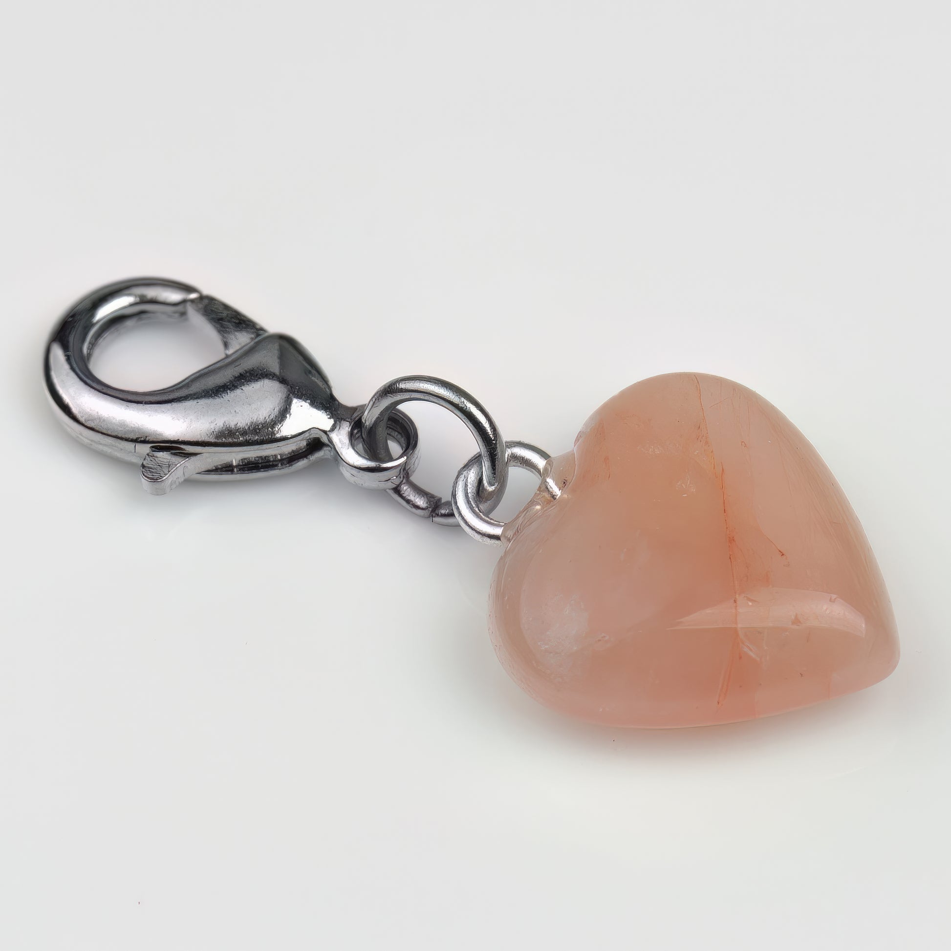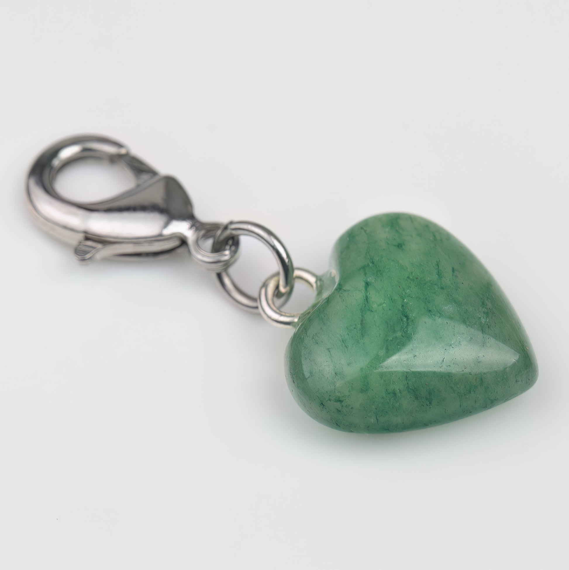 Edelstein Herz mit Edelstahl Karabiner zum anhängen an jedes Armband.