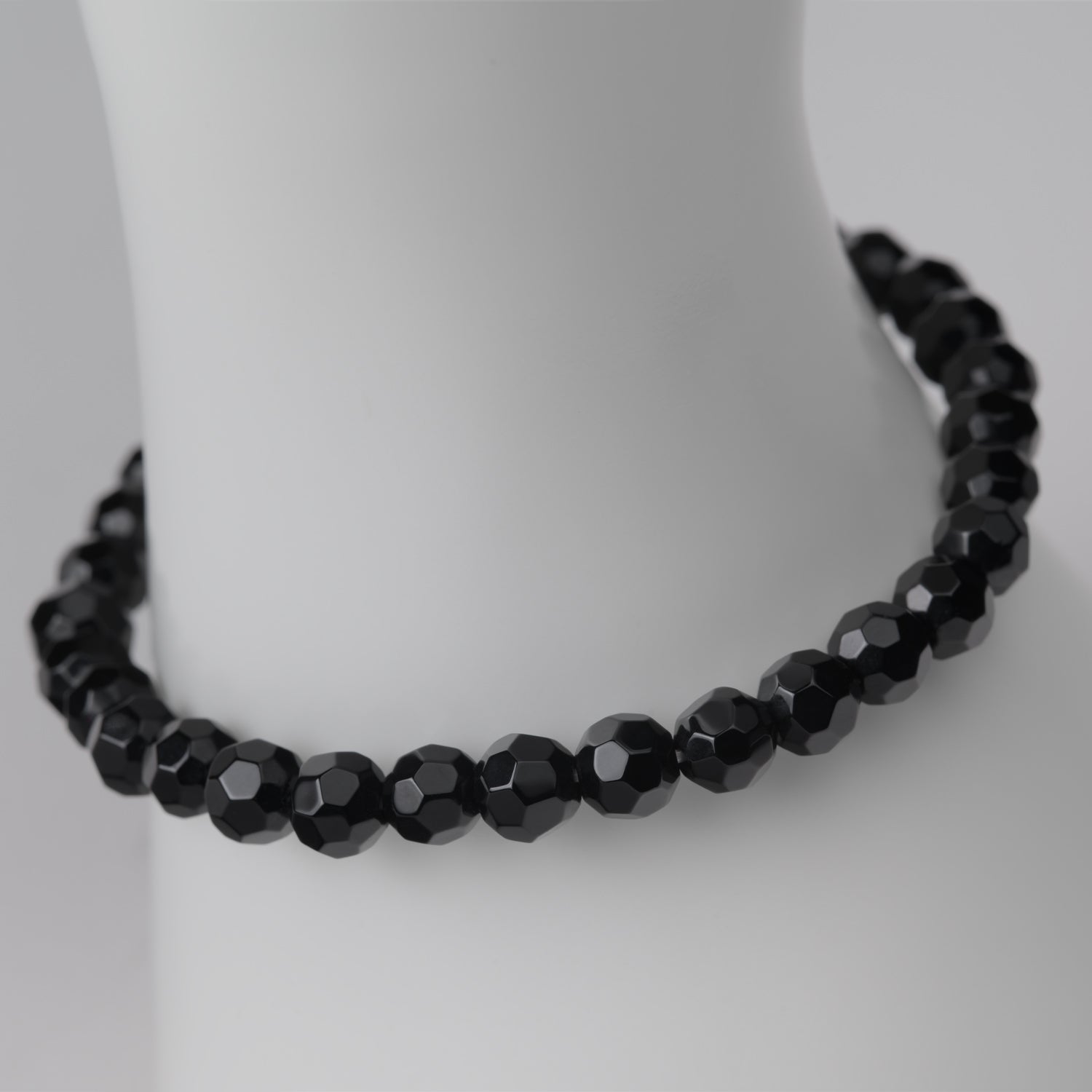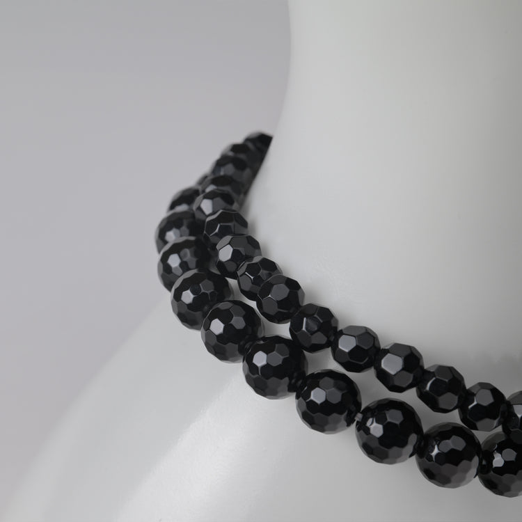 - schwarzer Obsidian Armband facettiert ‣ Einheitsgröße | Unisex ‣ Perlenform: rund | poliert ‣ Perlengröße: Ø x 6/8 mm wählbar