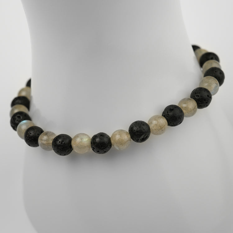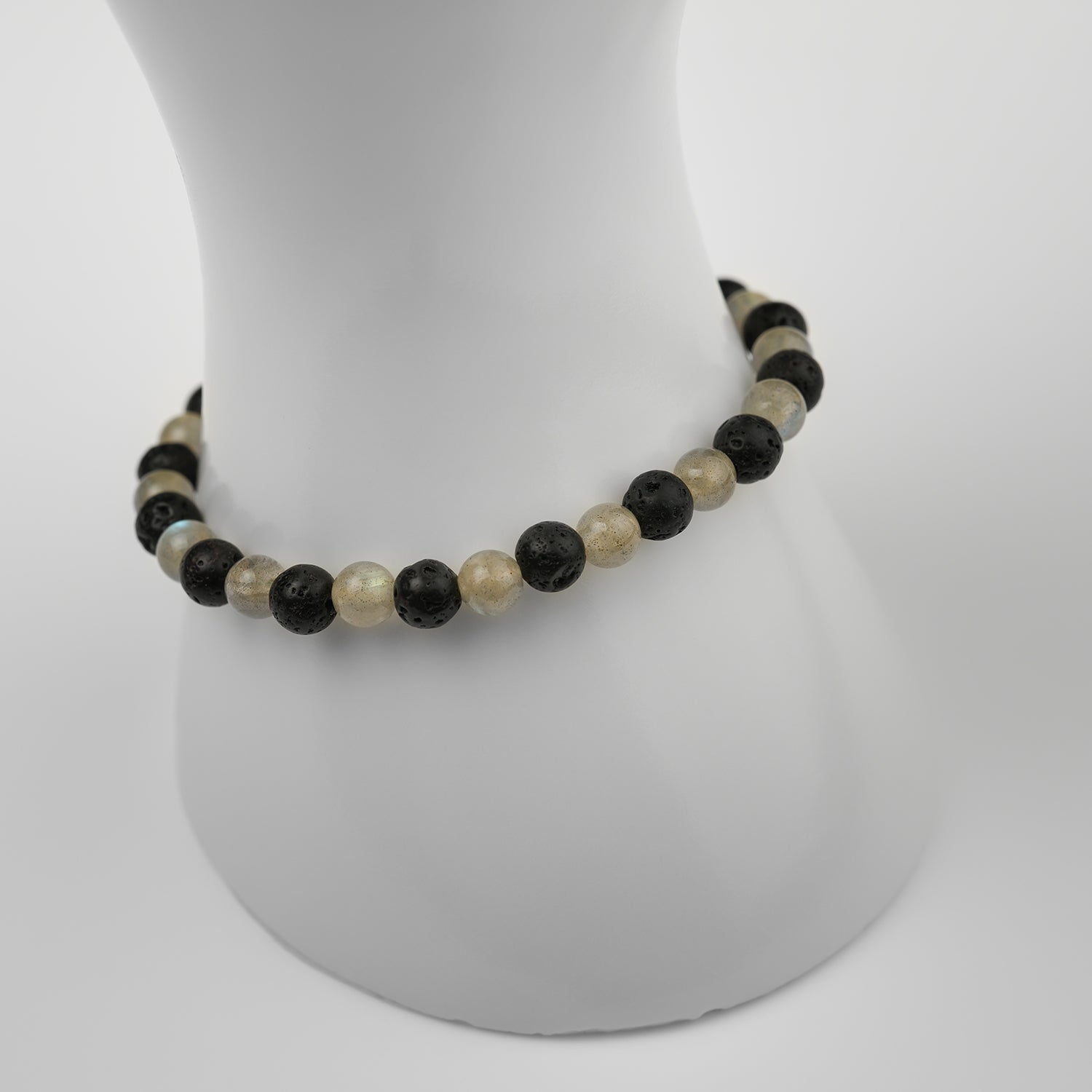 - Edelstein Armband mit runden Perlen aus hellem Labradorit und Lava aufgezogen auf einen elastischen Nylonfaden, daher flexibel und bequem anzulegen. Das Armband hat eine Tragelänge von max. 18 - 20cm