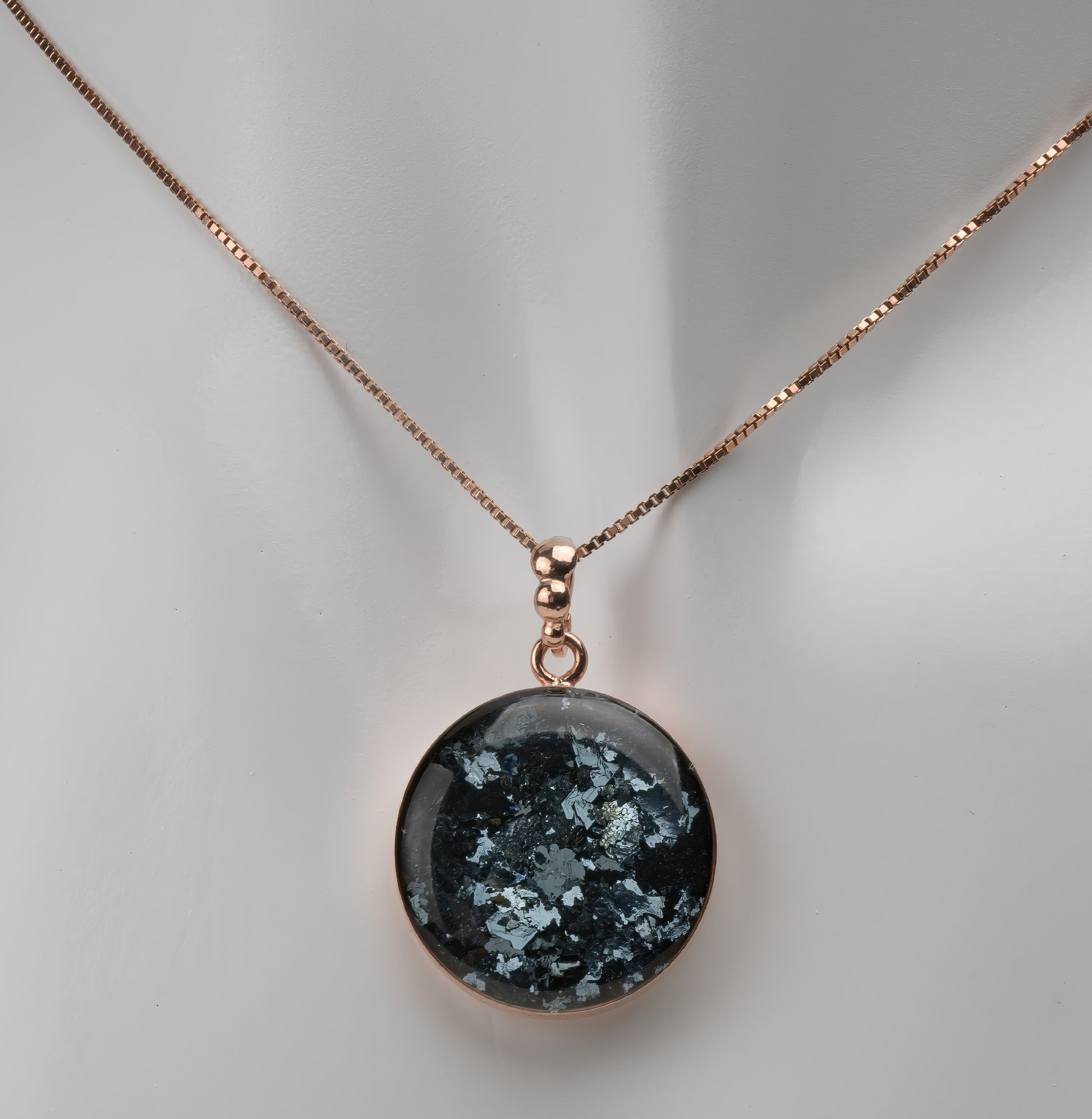 Hier erhalten Sie passend zum Sternzeichen Skorpion, ein Hämatit Medaillon aus 925er Sterlingsilber 18K rose vergoldet mit einer Venizianer Kette 45cm / 1,2mm.