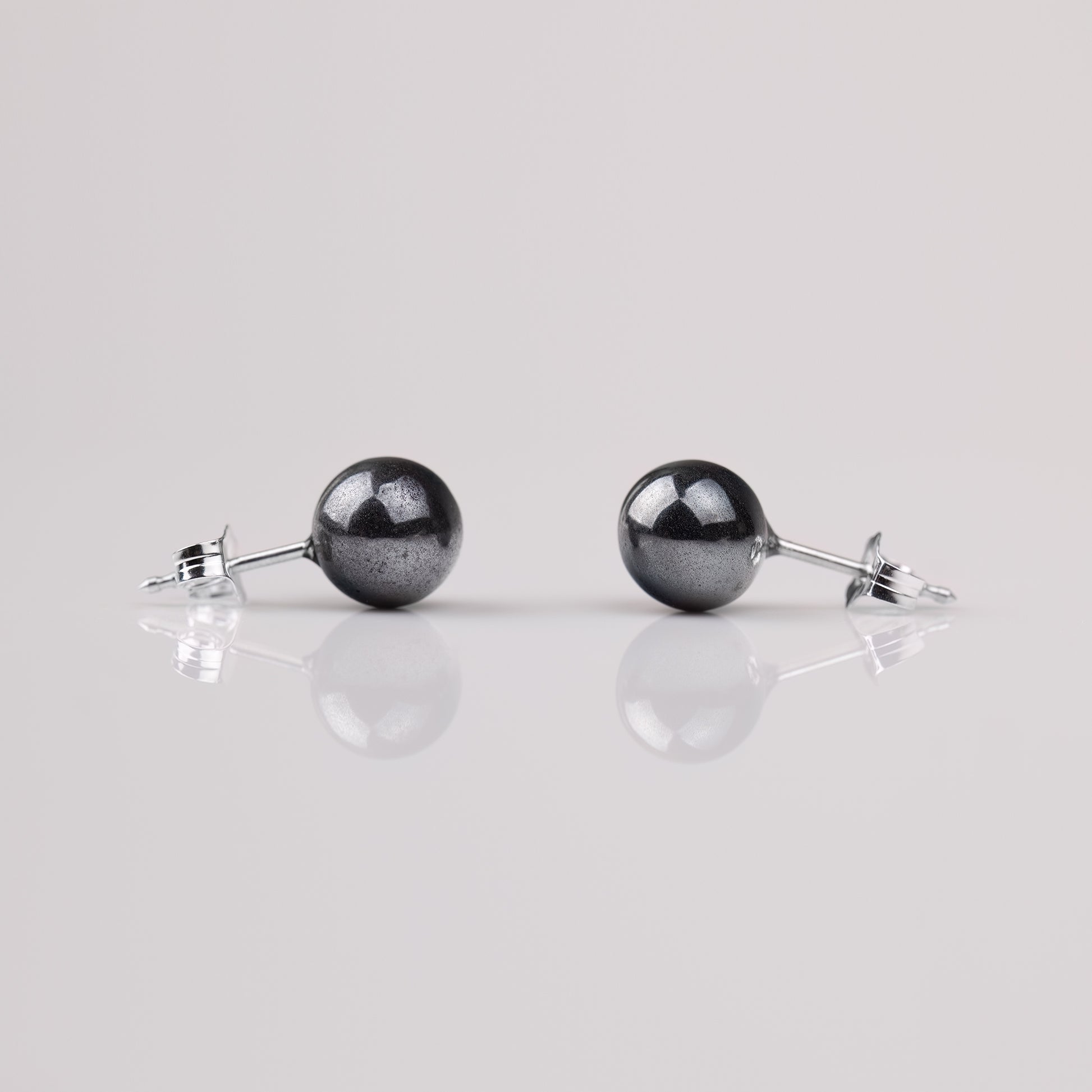 Hämatit Kugel Ohrstecker 8mm 925er Silber