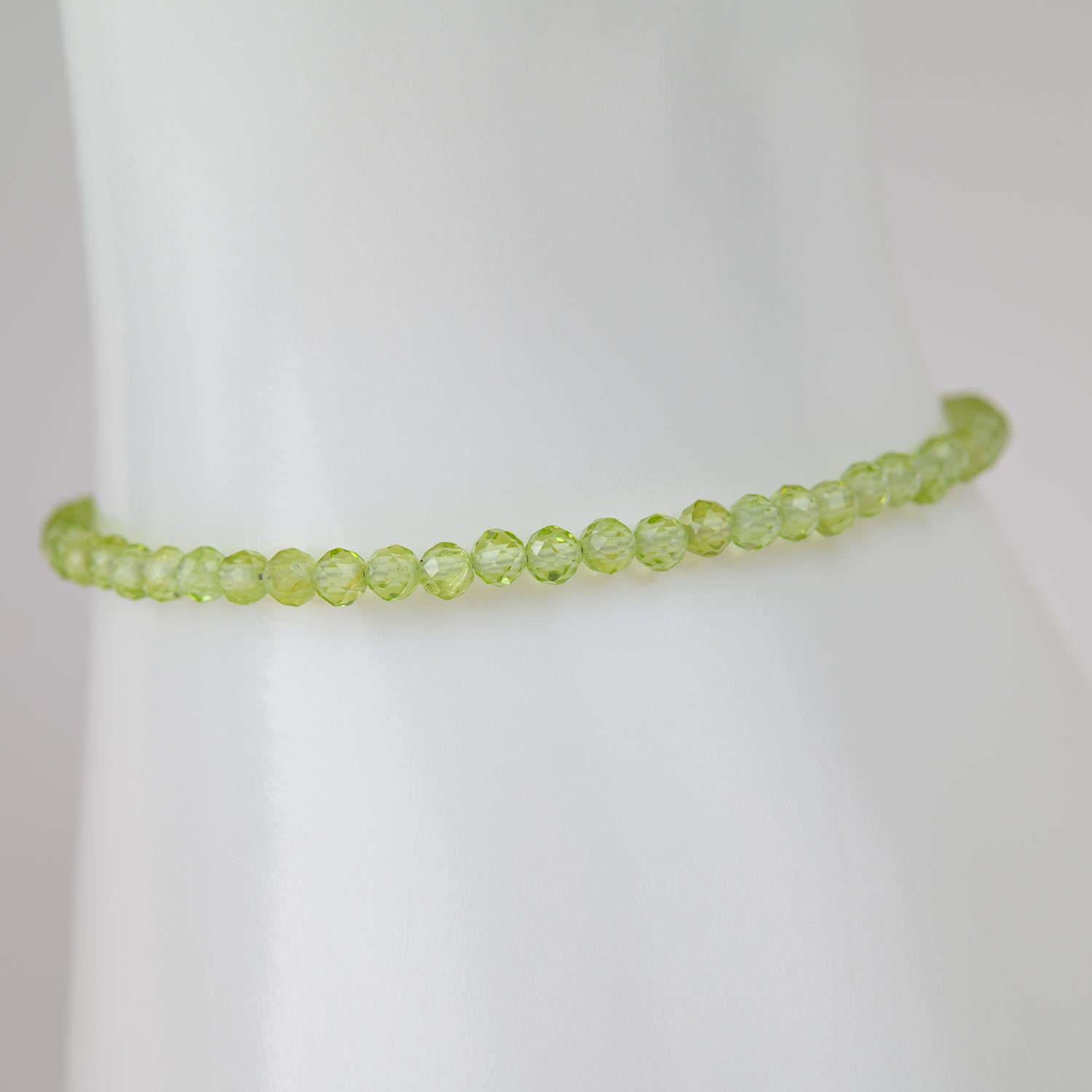 - 925 Sterlingsilber Olivin Armband facettiert ‣ Einheitsgröße | Unisex ‣ Perlenform: rund facettiert | poliert ‣ Perlengröße: Ø 2-2,5mm