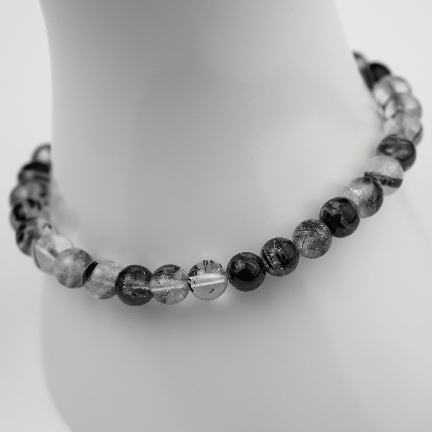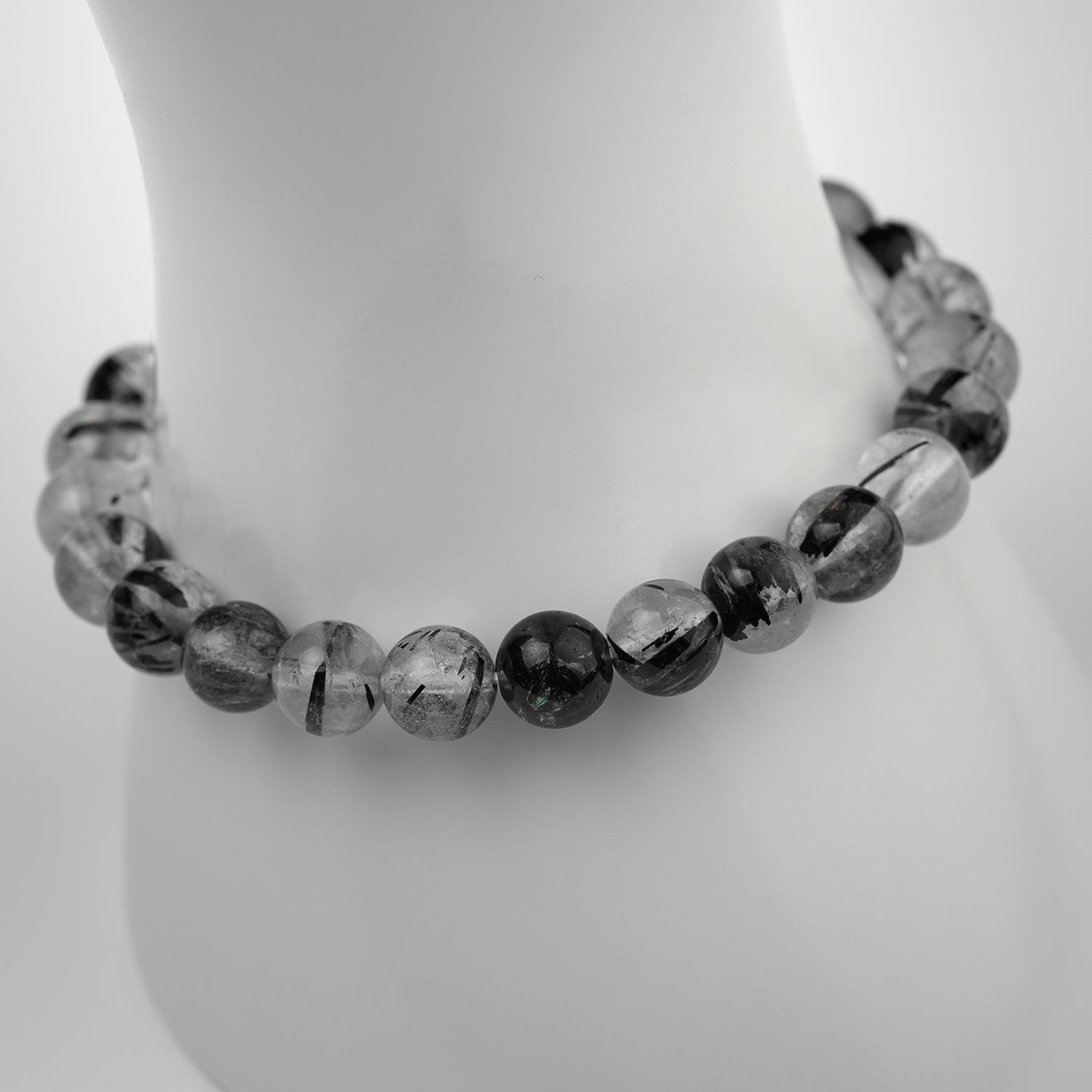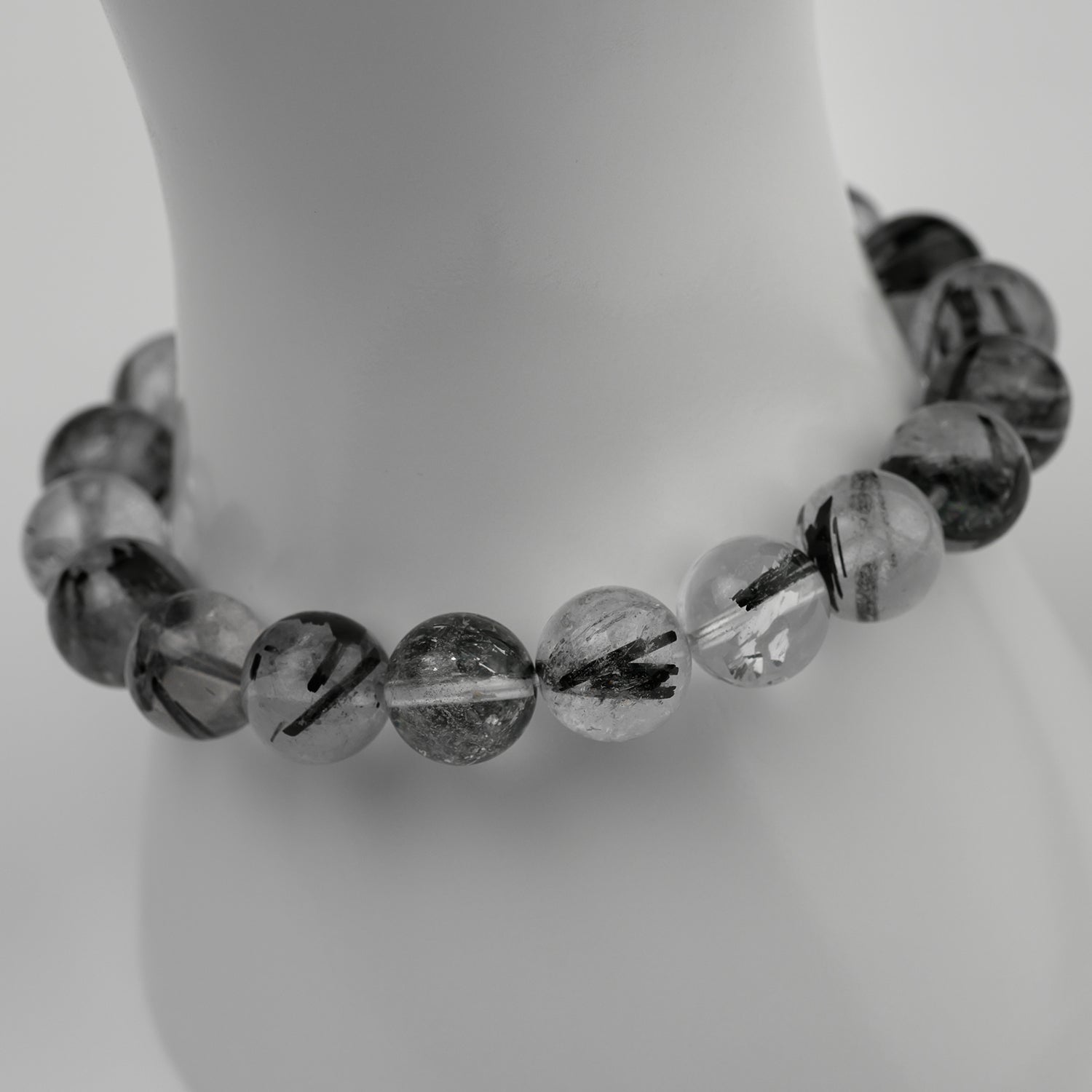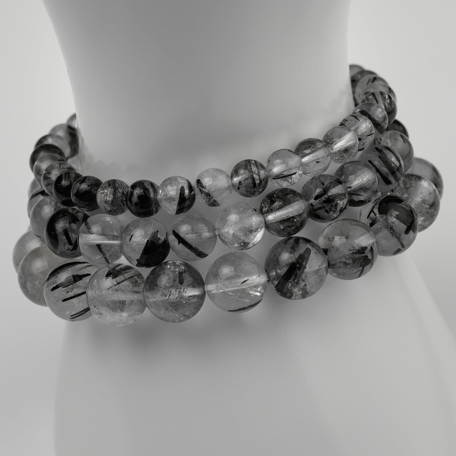 - Edelstein Armband mit runden Perlen aus Bergkristall Turmalin, aufgezogen auf einen elastischen Nylonfaden, daher flexibel und bequem anzulegen. Das Armband hat eine Tragelänge von max. 18 - 20 cm